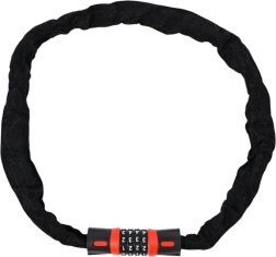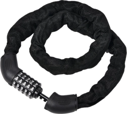 Spolehlivě zabezpečte své kolo, koloběžku či skútr robustním řetězovým zámkem s kombinací. Díky 5místnému kódu získáte až 100 000 možností nastavení, což výrazně zvyšuje ochranu proti neoprávněnému otevření. Ochranný textilní návlek brání poškození laku a zámek je navíc odolný proti korozi.