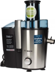 Výkonný odšťavňovač BOSCH pro rychlou domácí šťávu z ovoce i zeleniny. Nabízí motor 700 W, 73 mm plnicí otvor pro celé kusy, nerezové sítko pro jemnou šťávu a čistou práci díky DripStop. Dva režimy pro měkké i tvrdé suroviny (2 rychlosti), bezpečný provoz s bezpečnostní pojistkou a snadné čištění.