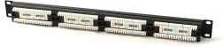 24 portů RJ45 s čelními štítky pro jasné označení zajišťuje přehlednost a snadnou správu vašich připojení v racku 19".