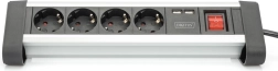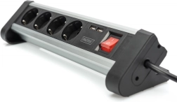 Biurowá napájecí lišta 45° se 4 zásuvkami, 2x USB (5V/2A), otočná 290°