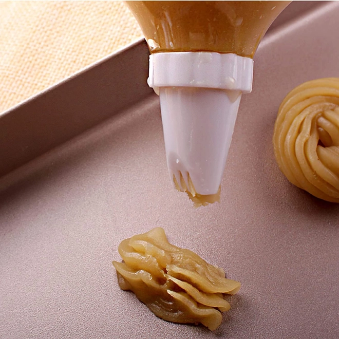 Výsledný efekt je fantastický. Se zdobičkou vykouzlíte z obyčejných dortů a zákusků na oko krásné upravené a uhlazené dezerty. Zdobička je vhodná pomůcka do výbavy cukráře profesionála, ale i cukráře amatéra. V balení je 8 nástavců, které lze použít na různé styly zdobení. Funguje na principu injekční stříkačky, tudíž nehrozí žádný nepořádek. S touto zdobičkou vám zdobení půjde od ruky.