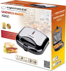 Opékač sendvičů Esperanza Asiago je vybavený protiskluzovou úpravou, která zajišťuje snadné čištění. Stačí použít papírový ubrousek a povrch je opět čistý. Díky rychlému zahřívání je vaše oblíbená křupavá pochoutka hotová během několika minut.