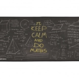 Podložka se pyšní unikátní grafikou, která napodobuje školní tabuli zobrazující matematické vzorce, geometrické tvary a obsahující vtipný nápis "Keep Calm and Do Maths", což je ideální pro každého studenta.