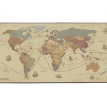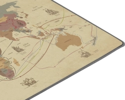 Jedinečná grafika podložky představuje mapu světa s vyznačenými hlavními objevitelskými cestami, což dodává historický a vzdělávací prvek.