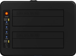 Stanice podporuje systémy Windows i macOS, nabízí hot-swap výměnu disků a přehledné LED indikátory pro stav napájení i postup klonování. Stabilní napájení z přiloženého adaptéru zaručuje spolehlivost při zálohování a migraci dat. Elegantní černé provedení s modrým LED kroužkem skvěle zapadne na každý stůl.