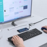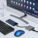 Máte kompatibilní smartphone? Zapněte režim Samsung DeX, Huawei EMUI Desktop nebo PC Mode, připojte klávesnici a myš a používejte telefon jako stolní počítač. Adaptér je Plug & Play, nevyžaduje žádné ovladače a je navržen pro širokou kompatibilitu se zařízeními s USB‑C.