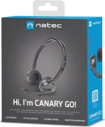 Sluchátka s viditelným 'Natec' logem na náušníku. Nabízejí nastavitelný hlavový pás pro skvělé přizpůsobení.
