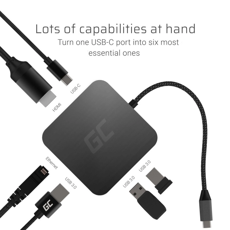 Maximalizujte konektivitu jediným řešením. GREEN CELL 6v1 přidá vše, co potřebujete: rychlá data přes USB 3.0, stabilní síť díky Gigabit Ethernet, ostrý obraz s HDMI až 4K a současné nabíjení přes USB‑C Power Delivery až 87 W. Perfektně sedí k ultrabookům jako APPLE MacBook, DELL XPS, ASUS ZenBook, LENOVO ThinkPad a dalším se sběrnicí USB‑C.