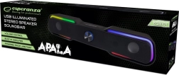 USB soundbar s LED osvětlením Apala nabízí čistý a přirozený zvuk, který je ideální pro vaše notebooky a stolní počítače. Soundbar je snadno připojitelný ke všem počítačům s výstupem pro reproduktory a USB portem.