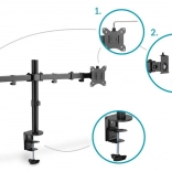 Optimalizujte svůj pracovní prostor s dvojitým stolním držákem na monitory, který je navržen pro obrazovky o velikosti 15" až 32". Držák podporuje VESA 75/100 a unese až 8 kg na monitor. Tento držák zaručuje ergonomické sezení díky možnosti nastavení výšky až do 31,5 cm.