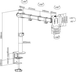Držák monitoru poskytuje skvělou možnost individuálního nastavení obrazovky pro optimální ergonomii. Je vhodný pro monitory o velikosti 15"-32" s maximální nosností 8 kg.