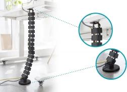 - Přizpůsoben pro stoly s nastavitelnou výškou i samostatně stojící stoly, skrytí kabelů od podlahy ke stolu.