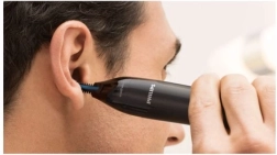Zastřihovač je vodotěsný pro snadné čištění a funguje na AA baterii, což zaručuje mobilitu.