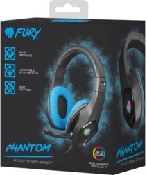Herní headset FURY Phantom kombinuje atraktivní design s praktickými funkcemi. 40mm měniče věrně vykreslí kroky soupeřů i vzdálené výstřely, abyste vždy přesně věděli, odkud přichází akce. RGB efekt s duhovým logem dodá vaší sestavě osobitý vzhled a zvýrazní váš herní styl.