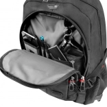 Prostorná hlavní komora pojme notebook o úhlopříčce 15,6 palce a je vybavena přepážkou a páskem na suchý zip pro bezpečné uchycení během přepravy.