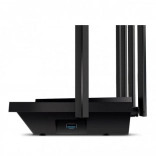 Router nabízí moderní zabezpečení s podporou WPA3, firewallem SPI a rodičovskou kontrolou. Také disponuje jedním portem USB 3.0, čtyřmi gigabitovými LAN porty a jedním gigabitovým WAN portem, poskytujícím flexibilitu pro rozšíření sítě.