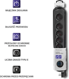 - 6 zásuvek a 5 m napájecí kabel pro flexibilní použití v domácnosti i kanceláři.