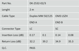 Spolehlivý patchkabel pro moderní sítě: duplexní optický kabel OM3 50/125 µm s konektory LC–SC, délka 2 m, plášť LSOH pro vyšší bezpečnost a keramická ferula pro přesné spojení a nízké ztráty.