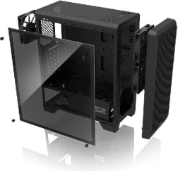 Tato moderní PC skříň kombinuje čistý design s promyšlenou funkcionalitou. Bočnice z 4mm tvrzeného skla poskytuje panoramatický pohled na komponenty, přičemž snadný přístup zajišťují ruční šrouby. Díky prostornému interiéru pohodlně osadíte výkonné grafické karty a vysoké chladiče procesoru.