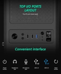 - Chlazení: přední pozice pro 120 mm, osazeno 3× 120 mm