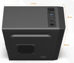 Skříň T6 kombinuje čistý, průmyslový design s účelnou konstrukcí pro stabilní proudění vzduchu. Přední mřížka s jemnou strukturou zajišťuje efektivní nasávání a předinstalovaný 120mm zadní ventilátor pomáhá s odtahem teplého vzduchu pro nižší teploty komponent.