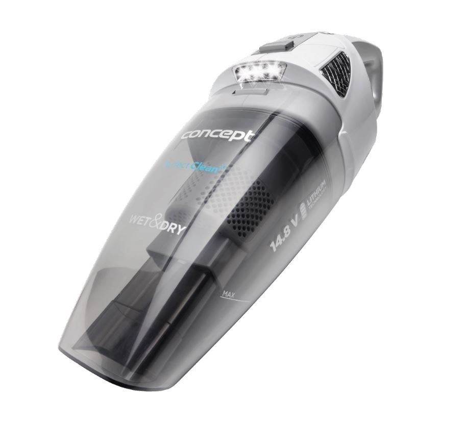 Concept VP4370 je kompaktní ruční vysavač s technologií Wet & Dry, který si poradí se suchými nečistotami i rozlitými tekutinami. 3 LED diody nasvítí tmavé rohy, škvíry a prostory pod nábytkem, takže vám nic neunikne. Díky bezdrátovému provozu a ergonomické rukojeti je vždy připraven na rychlý úklid.