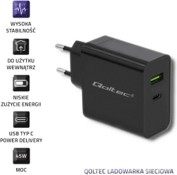 POWER DELIVERY (PD) chytře přizpůsobí napětí a proud připojenému zařízení a díky modernímu rozhraní USB‑C poskytne vysokou účinnost i univerzálnost. Výkon 45 W postačí pro smartphony, tablety a vybrané notebooky, takže jednu nabíječku využijete pro více zařízení.
