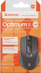 Praktická drátová myš DEFENDER Optimum MB-270 nabízí přesné ovládání díky optickému snímači 1000 DPI, spolehlivé připojení přes kabel a 3 tlačítka pro pohodlnou práci každý den.
