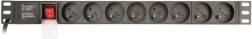 Lišta nabízí 8 francouzských zásuvek (FR) s přívodem přes Schuko zástrčku a 3m napájecí kabel, což usnadňuje umístění v rámci racku. Robustní konstrukce a profesionální provedení zaručují stabilní provoz.