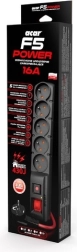 Acar F5 Power je posílená 16A verze oblíbené přepěťové lišty z rodiny acar-AXON. Při délce necelých 33 cm nabízí pět zásuvek s ochranným kolíkem a účinný přepěťový obvod, který odvádí energii špiček do zemnění přes vodič PE. Praktické držáky pro montáž jsou součástí balení.