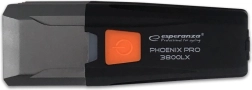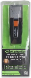 Profesionální vodotěsné světlo na kolo Esperanza PHOENIX PRO 3800 LX má výkonnou bílou LED diodu typu CREE T6, která v režimu MAX vyzařuje silné světlo 3800 lx. Toto super silné světlo rovnoměrně osvítí silnici až 200 m před vámi a je viditelné z více než 2000 m. V režimu MAX vydrží svítit až 170 minut. Má 5 vestavěných režimů svícení, které měníte stisknutím tlačítka napájení. Vestavěná dobíjecí baterie nabíjená přes micro USB s velmi vysokou kapacitou 2200 mAh umožňuje používat světlo až 30 hodin v režimu SUPER ECONO. Indikátor nabití baterie signalizuje nízký stav nabití.