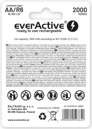 Sada čtyř nabíjecích baterií AA s kapacitou 2000 mAh v technologii ready to use pro okamžité použití. Ideální pro fotoaparáty, blesky, svítilny a přenosné přehrávače. Nabídnou výkon srovnatelný s alkalickými bateriemi, ale lze je opakově nabíjet až 1200× a lépe zvládají vysoké vybíjecí proudy.