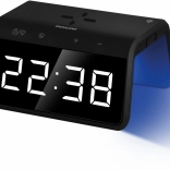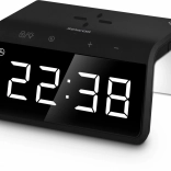 Moderní digitální budík s velkým LED displejem a integrovanou bezdrátovou nabíječkou vám zpříjemní každé ráno. Nabízí rychlé bezdrátové nabíjení telefonu, přehledný čas na velkém displeji a stylové barevné podsvícení s možností stmívání pro pohodlné noční použití.