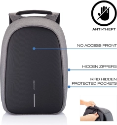Batoh se otevírá pouze od zadní strany, což komplikuje přístup zlodějům. Skryté kapsy a zipy poskytují dodatečnou ochranu.