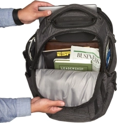 - Polstrovanou kapsu pro iPad/Tablet: Umožňuje bezpečné uložení vašeho tabletu.