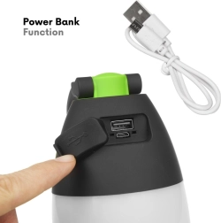 Funkce powerbanky umožňuje nabíjení telefonu, smartphonu nebo tabletu pomocí portu USB lampy, což přidává další úroveň pohodlí a užitečnosti.