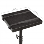 Tento praktický stojan na projektor kombinuje snadné přenášení se stabilní kovovou konstrukcí. Teleskopická tyč umožní rychle přizpůsobit výšku podle prostoru a velikosti plátna, zatímco lemovaná police a popruhy na suchý zip udrží projektor bezpečně na místě.