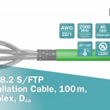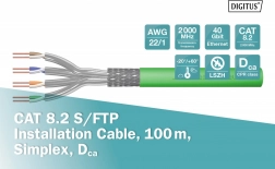 Instalační kabel DIGITUS CAT 8.2 je navržen pro velmi rychlé a stabilní sítě nové generace. Díky konstrukci 4×2× AWG 22/1 (jednožilový vodič) dosahuje vynikající kvality signálu a přenosových frekvencí až 2000 MHz. Dvojí stínění S/FTP (opletení + fólie na párech) účinně potlačuje rušení a zaručuje spolehlivost i v náročném prostředí.