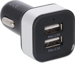 Univerzální autonabíječka do 12/24 V zásuvky s dvěma USB porty pro současné nabíjení 2 zařízení. Kompatibilní s většinou smartphonů a drobné elektroniky, ideální pro cestování autem.