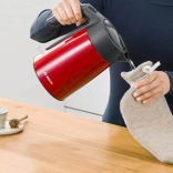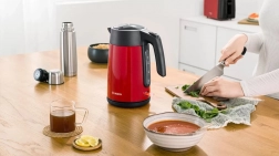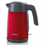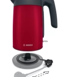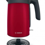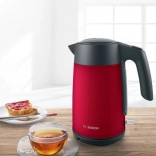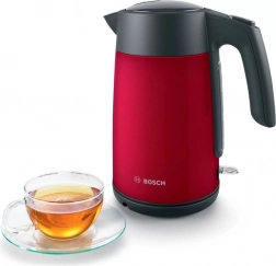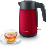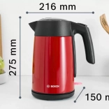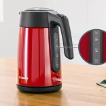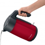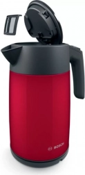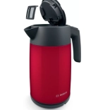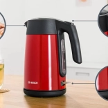 Stylová rychlovarná konvice BOSCH o objemu 1,7 l v elegantní červené barvě přináší rychlý ohřev vody a pohodlné ovládání. Díky ukazateli jedné šálky ohřejete jen tolik vody, kolik potřebujete, což šetří čas i energii. Praktický tvarovaný výlev zajišťuje přesné nalévání bez rozlití, zatímco čitelné měřítko hladiny usnadní plnění. O bezpečný provoz se stará trojitý bezpečnostní systém a komfort doplňuje otevírání víka tlačítkem a schránka na kabel.