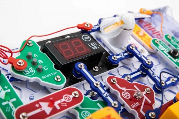 - 1× deska, 35× součástek (např. letadlo, miniauto, reproduktor, detektor pohybu, motor s převodovkou), 1× manuál (ke stažení online)