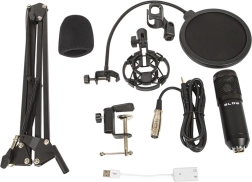 Vysokokvalitní studiový mikrofon značky Blow s plným příslušenstvím umožňuje okamžité použití. Mikrofon s USB připojením je ideální pro nahrávání zvuku na počítači či notebooku, streamování a další účely.