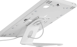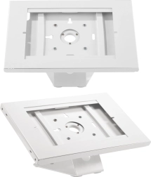 Elegantní a spolehlivý stojan na tablet vhodný jak pro dočasné, tak trvalé použití, nabízí uzavřenou kovovou konstrukci pro bezpečnost a trvanlivost. Tento stojan umožňuje nastavit pozici tabletu z horizontální na vertikální, což je ideální pro přizpůsobení obsahu vašim potřebám.