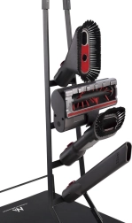 Design stojanu umožňuje flexibilní uložení až čtyř různých čisticích nástavců, což z něj činí praktický nástroj pro každou domácnost. Je vybaven plastovým úchopem pro pevné držení vysavače, a vyváženou základnou, která poskytuje dostatek prostoru pro podtlak a zajišťuje stabilitu při použití. Antiskidové EVA podložky pod základnou zajišťují, že nedojde k poškrábání podlahy.