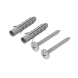V balení najdete hmoždinky a šrouby pro bezpečné uchycení zařízení na zeď či do rozvaděče, vše pro čistou a stabilní instalaci.