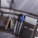 Uvnitř najdete prostornou hlavní komoru pro notebook až 17,3” a promyšlené kapsy na myš, podložku, powerbank, sluchátka a další periferie. Přední panel nabízí praktický organizér na kancelářské drobnosti, klíče či USB, zatímco čtyři boční kapsy poslouží na láhve a věci, které chcete mít po ruce. Nechybí vyztužená ochranná kapsa na brýle a samostatná boční kapsa na telefon s průchodem pro kabely dovnitř i ven z batohu.