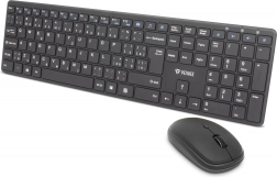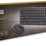 Klávesnice a myš jsou vybaveny technologií 2,4 GHz, která zajišťuje spolehlivé spojení s dosahem až 10 metrů.