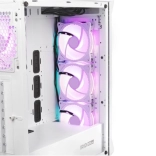 Čelní panel je vybaven dvěma USB 3.0 a USB 2.0 porty pro snadnou konektivitu. Díky čtyřem ventilátorům ARGB a možnosti instalace dalších dvou ventilátorů se tato skříň postará o perfektní chlazení. Tento model také zahrnuje tři filtry proti prachu pro udržení vnitřního prostoru čistého a elegantní organizaci kabelů s množstvím gumových průchodů.