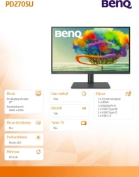 Objevte detailní obraz a věrné barvy na 27" IPS panelu s rozlišením 4K, který je ideální pro grafický design, úpravu fotografií i video. Monitor BENQ PD2705U přináší konzistentní zobrazení napříč celou plochou a stabilní pozorovací úhly. Díky rychlé odezvě 5 ms a kvalitnímu podsvícení je obraz plynulý a čistý.