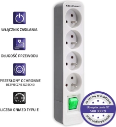 Tato prodlužovací šňůra je navržena tak, aby splňovala vaše každodenní potřeby v domácnosti nebo kanceláři, zatímco přináší eleganci a jednoduchost. Je dodávána ve variantě s 4 zásuvkami a délkou 1,8 metru, což zajišťuje dostatečný dosah. Podsvícený Quick Switch vypínač usnadňuje použití ještě více, umožňuje rychlé vypnutí a zapnutí zařízení jedním dotykem.